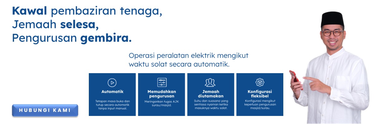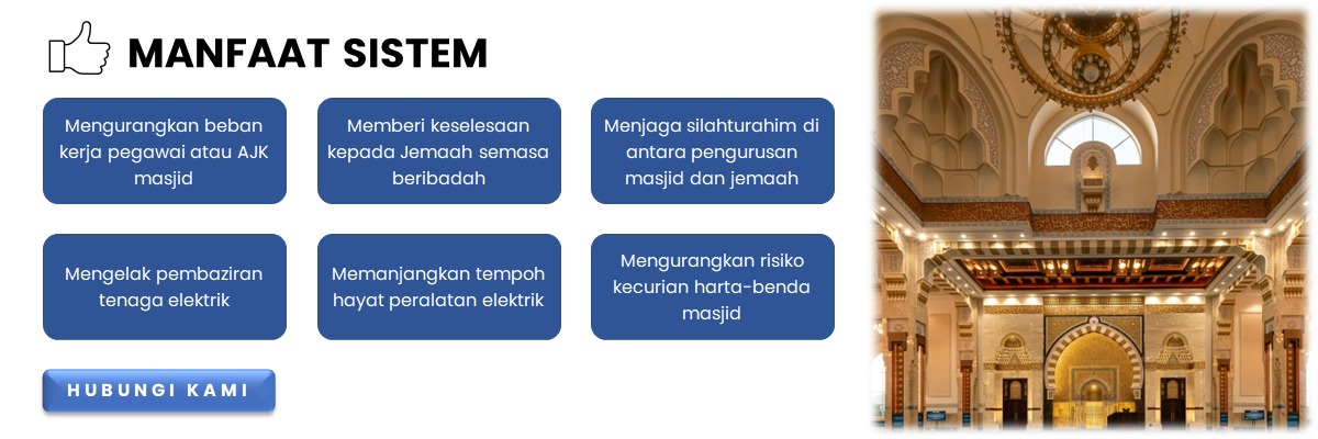 - Peralatan di tutup secara automatik selepas solat tamat dan jemaah beredar keluar