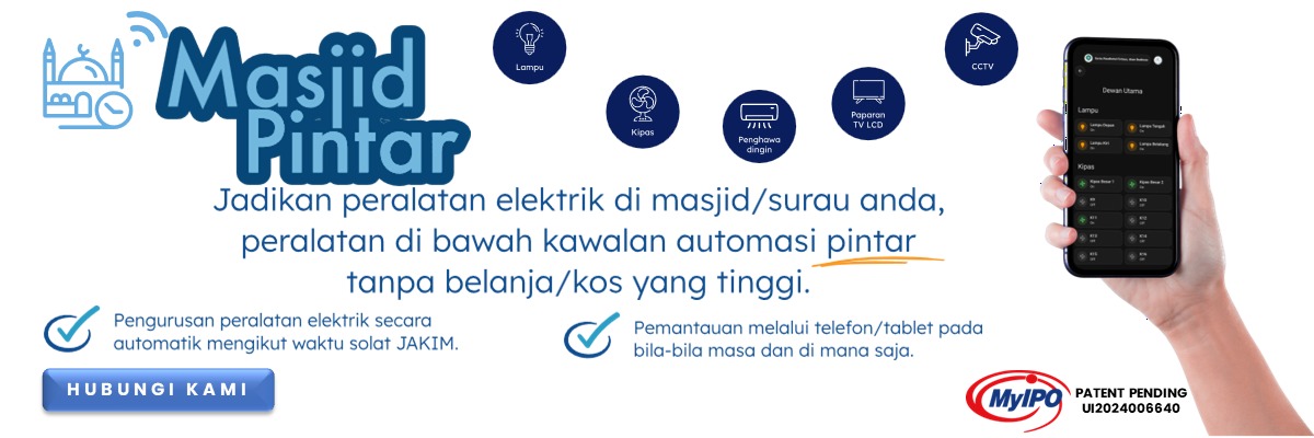 SISTEM MASJID PINTAR adalah sistem pintar berasaskan teknologi Internet of Things (IOT) pertama di dunia yang beroperasi secara automatik mengikut waktu solat bagi membantu pengurusan masjid menyelesaikan masalah operasi yang dihadapi.